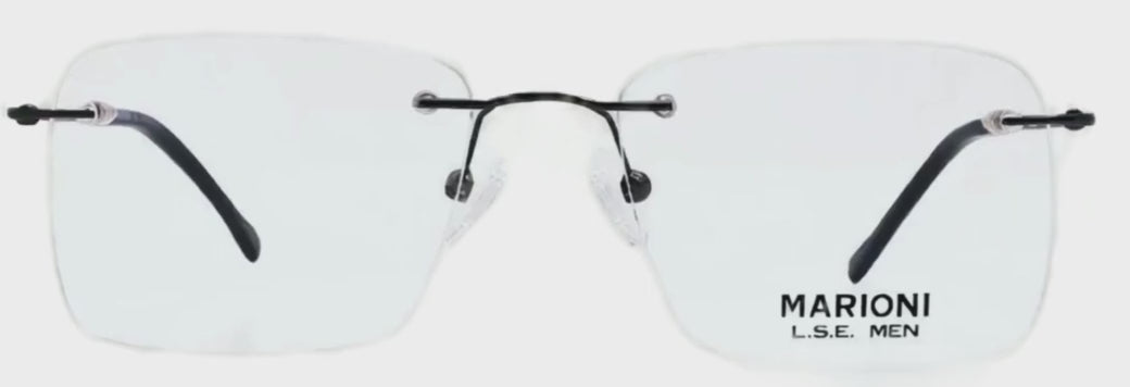 Lentes oftálmicos para hombre, sin marco, de tres piezas, Marioni M09 M3265 color gris. Armazón metálico, medidas 56-17-148, Incluye graduación básica de hasta 3 con 2 dioptrías.